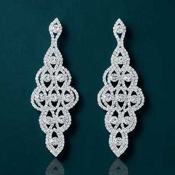 AMBER - clear rhinestone drop competition jewelry earrings - silver