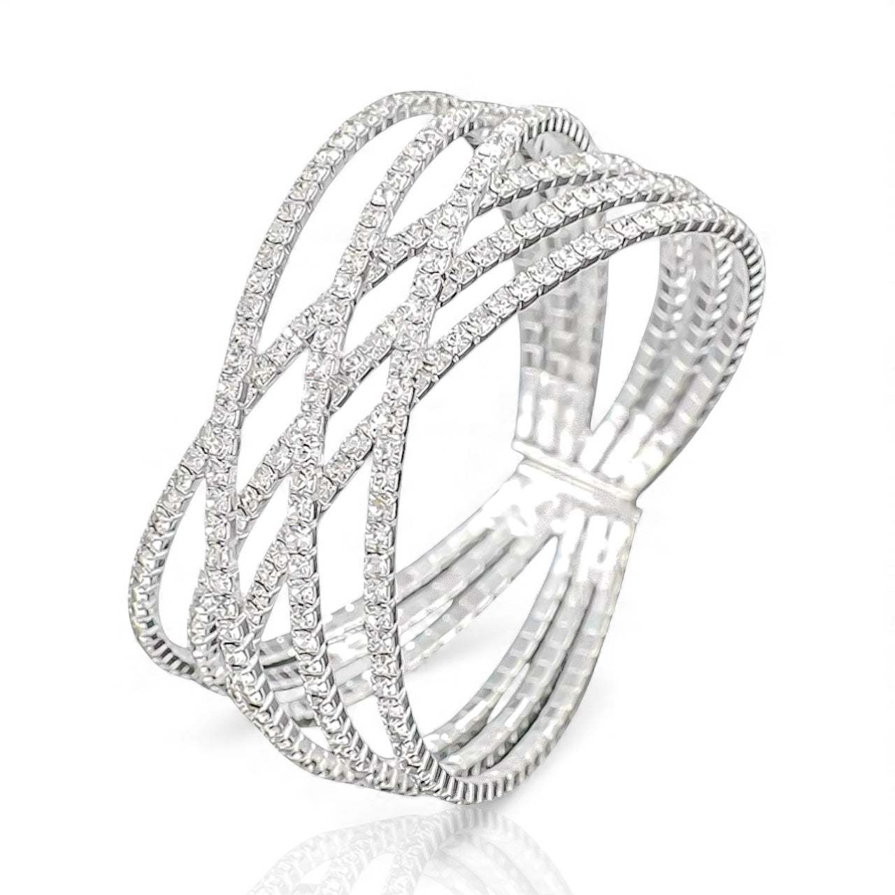 CRYSTAL - clear criss cross adjustable rhinestone bracelet - silver