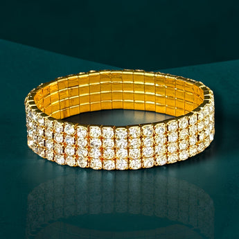 ✨ 4 Rows of Clear Crystals – classic brilliance with a golden edge