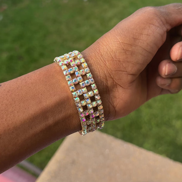 Baby Sharr AB Rhinestone Stretch Mesh Bracelet – Warm Gold Competition Jewelry