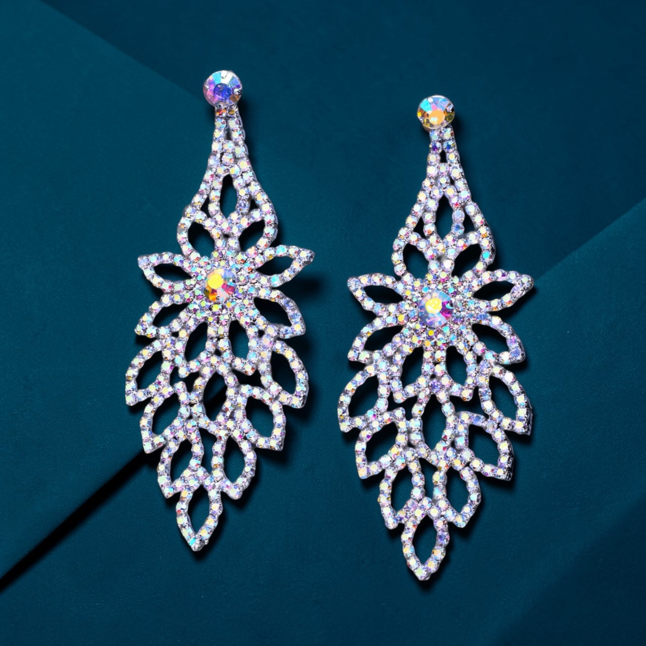 MAYA AB – Bloom Bold, Sparkle Louder ✨These floral stunners aren’t just earrings—they’re a moment. The Maya earrings were made for the Goddess who commands attention without saying a word. With AB rhinestones blooming in a silver floral design, every turn of your head is a light show.