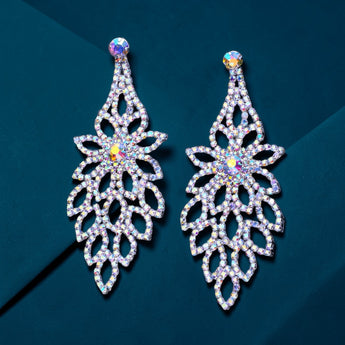 MAYA - ab rhinestone floral chandelier earrings (silver)