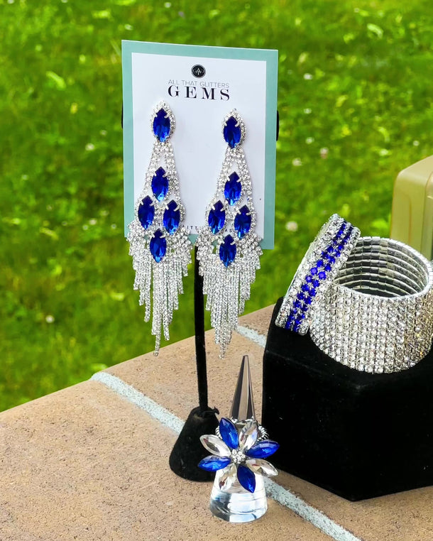 The Sapphire Blue & Clear Enchanted Set is pure ice-queen energy—crafted for the Goddess who commands attention and leaves a little sparkle everywhere she slays. This luxe combo radiates elegance, edge, and unmistakable confidence.
