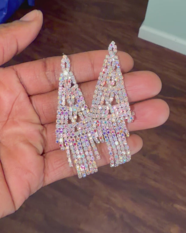 REIJUANA - AB crystal rhinestone dangle earrings (silver)