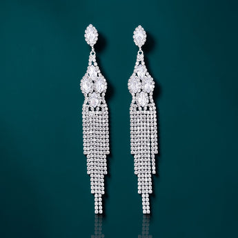 SIERRA - clear cubic zirconia dangle competition jewelry earrings-silver