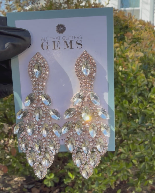EXQUISITE - Clear Rhinestone Marquise Drop Competition Earrings – Rose Gold Tone