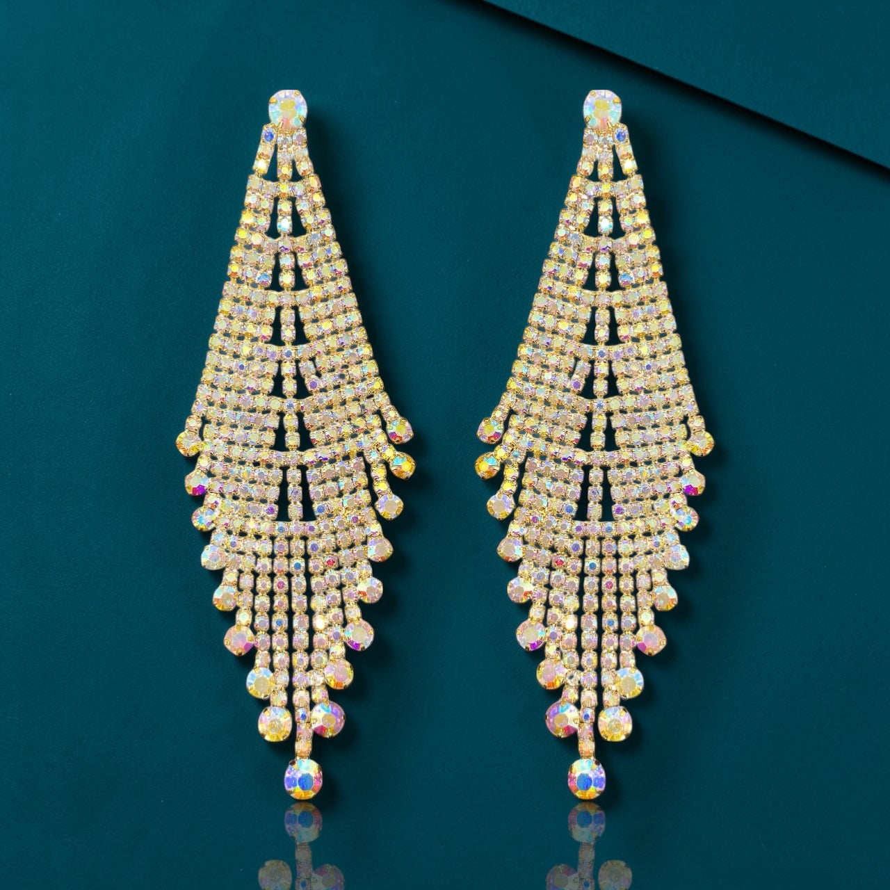 • 🌈 AB rhinestones on gold — color-shifting sparkle with a rich, golden glow