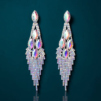 AB Rhinestone Marquise Drop Earrings – Silver Statement Stage Glam