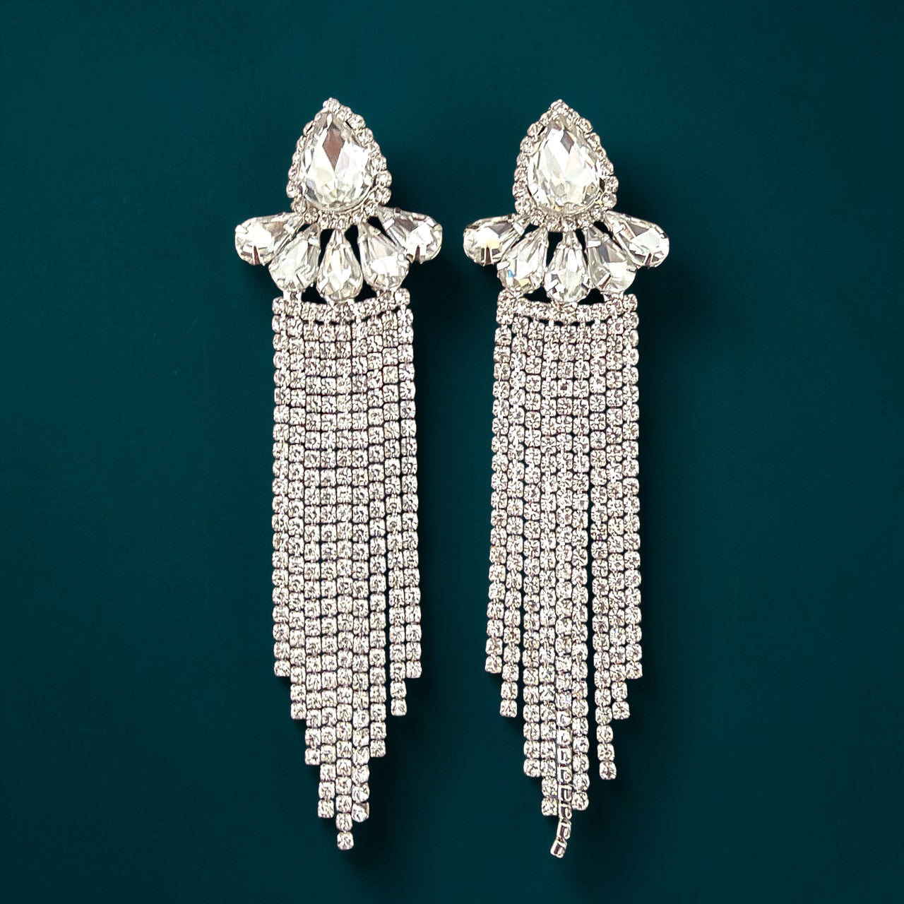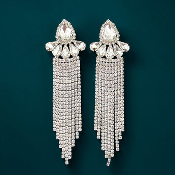 Sparkle in style with these J'adore -Clearncluster rhinestone dangle earrings, featuring a stunning clear rhinestones set on silver. Measuring 4" in length and 1" in width, these earrings are perfect for a fitness competitor looking for a versatile accessory. The stainless steel hypoallergenic post ensures comfort and security, while the cubic zirconia cluster vine fringe design adds a touch of elegance and glamour. Get ready to turn heads and feel confident with these must-have earrings!
