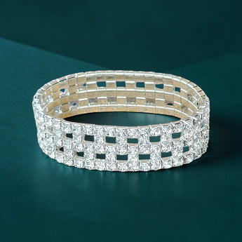 Baby Sharr Clear Rhinestone Stretch Mesh Bracelet – Silver Competition Jewelry