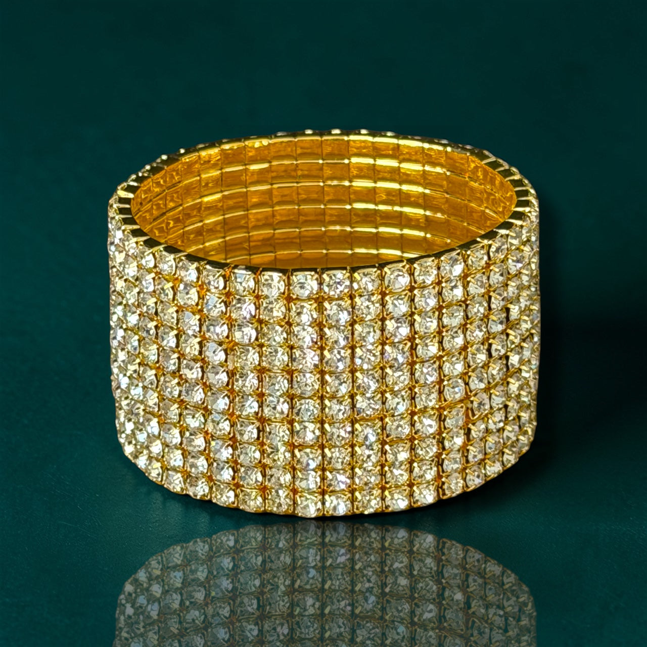 Madison 10 Gold Clear is the definition of bold glam. Ten dazzling rows of clear rhinestones on a radiant gold base—because Goddess, subtle isn’t in your vocabulary.