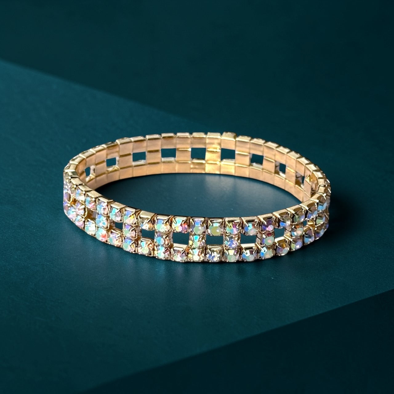 Mini Sharr 3 Row AB Rhinestone Stretch Bracelet-Warm Gold Competition Jewelry