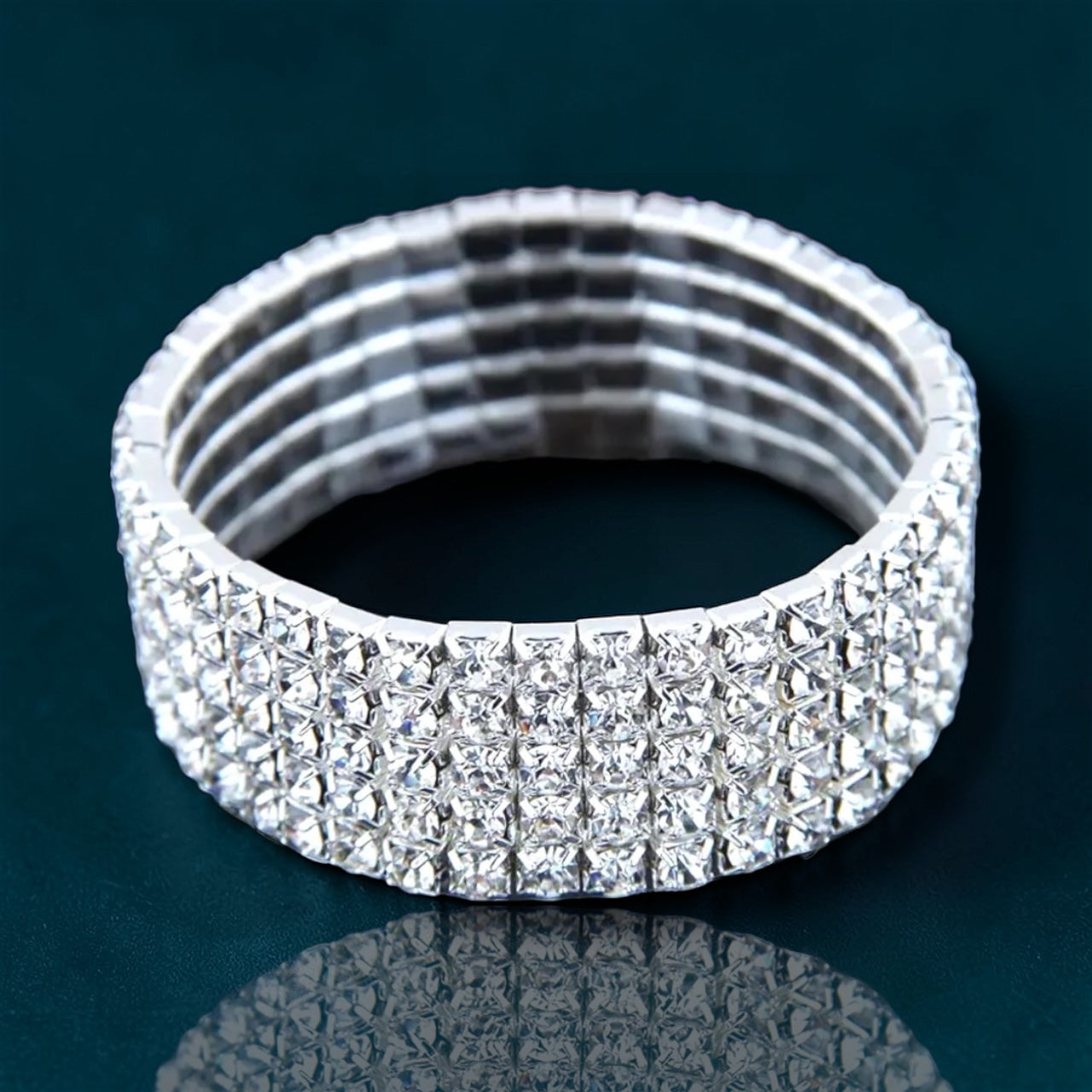 • 💎 Five rows of clear rhinestones—stacked on silver, built to shine