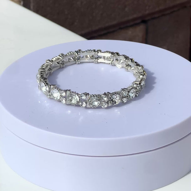 LOLA - Clear Silver Stretch Bubble Rhinestone Bracelet