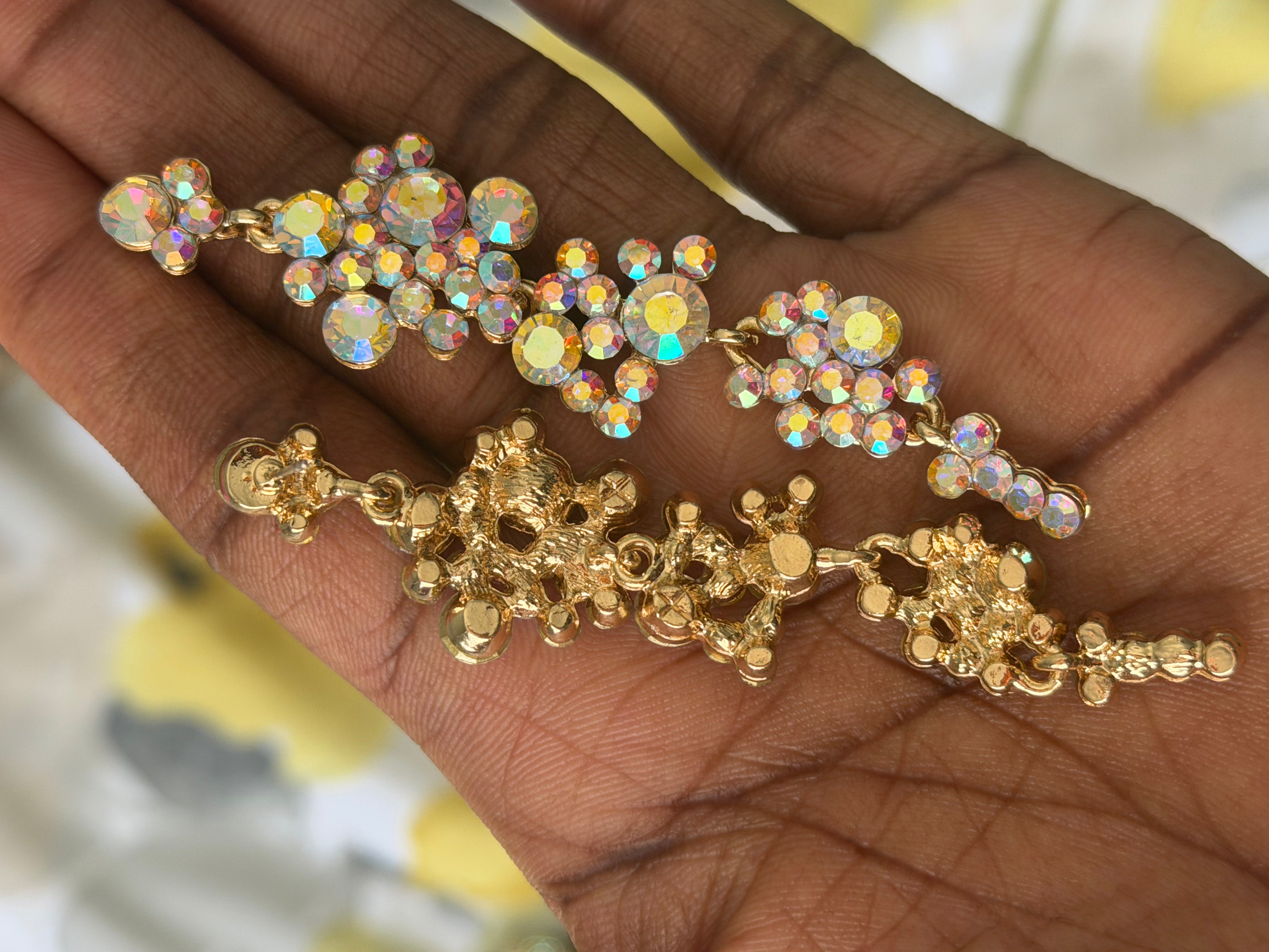 Fancy AB Rhinestone Bubble Drop Earrings-Warm Gold Competition Jewelry