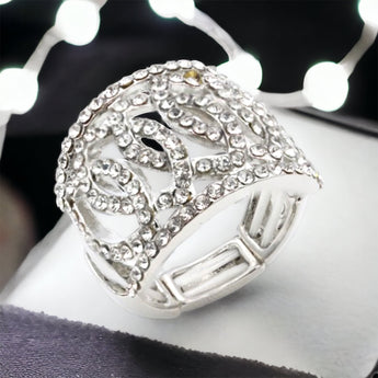 Lucy Clear Rhinestone Link Stretch Ring-Silver Competition Jewelry
