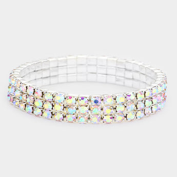 MADISON - AB rhinestone 3 row stretch bracelet, silver