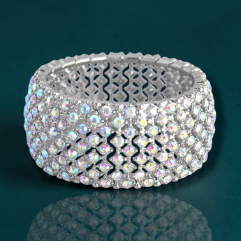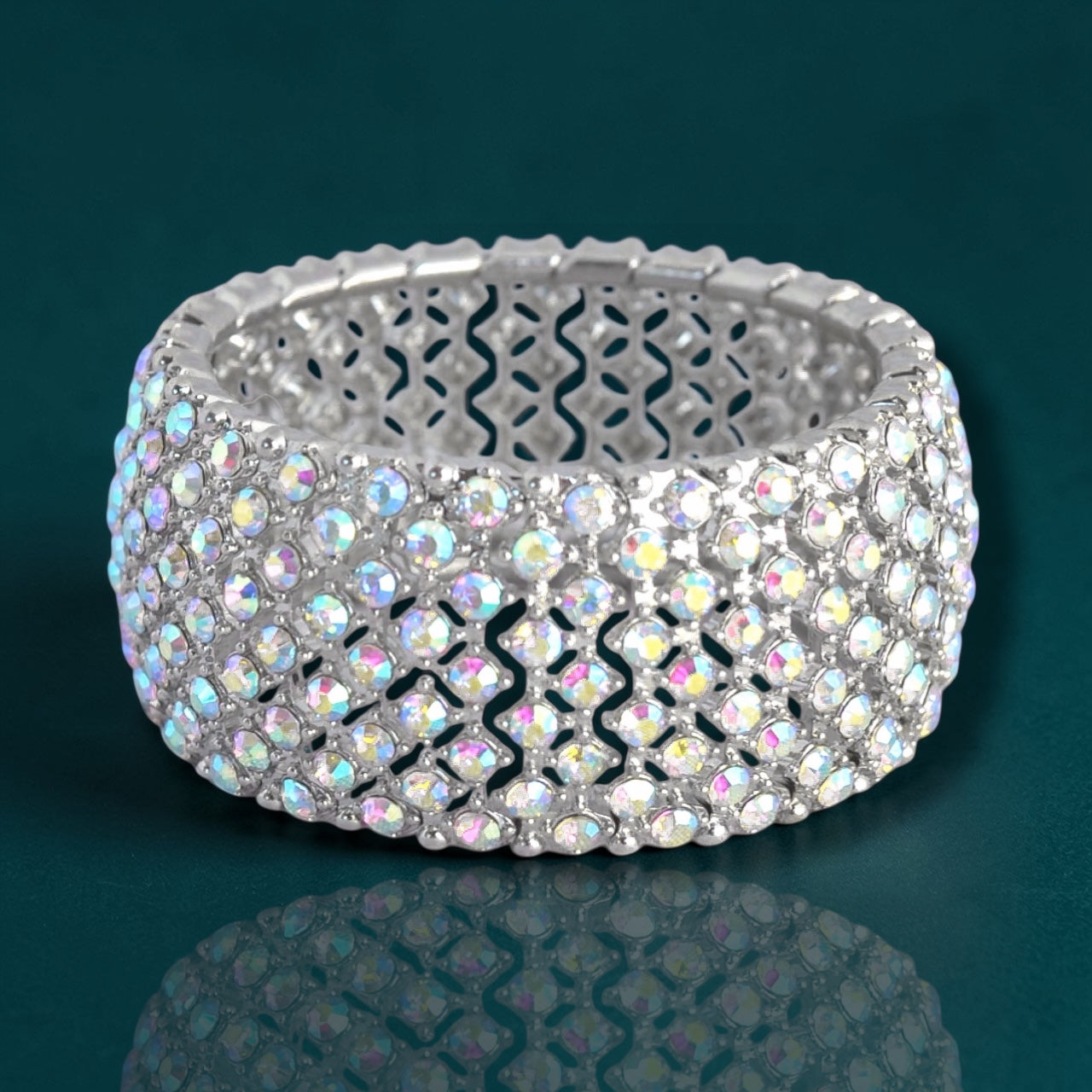 MEGAN - AB Rhinestone Pave Stretch Bracelet - silver